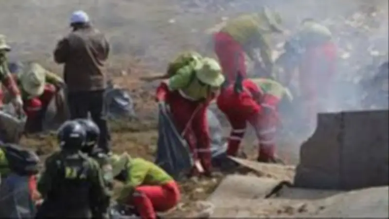 En la zona del impacto, maquinaria pesada y grúas avanzan en el levantamiento de la estructura de la aeronave. Volquetas trasladan restos metálicos, mientras efectivos policiales y militares de la Fuerza Aérea Boliviana (FAB) mantienen el control del perímetro.