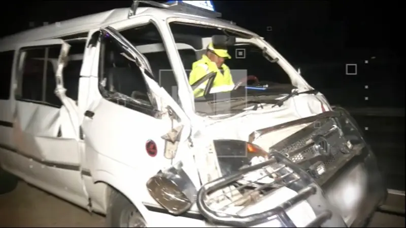 Un accidente de tránsito se registró la madrugada de este sábado en la carretera al norte, a la altura de Satélite Norte, cuando un vehículo de transporte público tipo trufi impactó violentamente contra la parte trasera de un camión de carga.