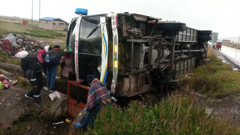Un bus protagonizó un despiste y posterior volcadura la mañana de este miércoles en el sector altura Chijipina Grande, en el municipio de Achacachi, provincia Omasuyos del departamento de La Paz.