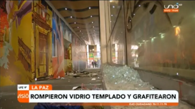 “Nos encontramos con este daño en este vidrio, estaba totalmente desecho, lo que hemos encontrado es que no hay ningún problema con la estructura en sí misma y por tanto esto ya ha recaído directamente en un hecho de vandalismo”, manifestó Sagárnaga.