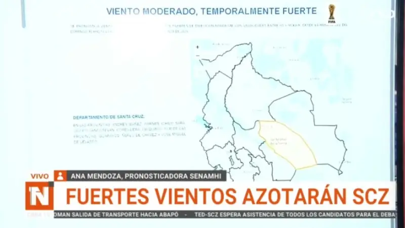 El Servicio Nacional de Meteorología e Hidrología (SENAMHI) emitió un aviso de alerta de prioridad naranja debido a la presencia de vientos moderados a temporalmente fuertes que afectarán principalmente al departamento de Santa Cruz, especialmente en la región del norte integrado.