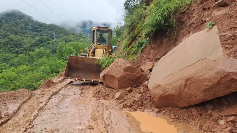 En el departamento de Chuquisaca, un derrumbe registrado en el sector Abra de Bartolo obligó a suspender la circulación en el tramo El Salto – Monteagudo. Personal técnico y maquinaria pesada trabajan en el lugar para restablecer el tránsito.