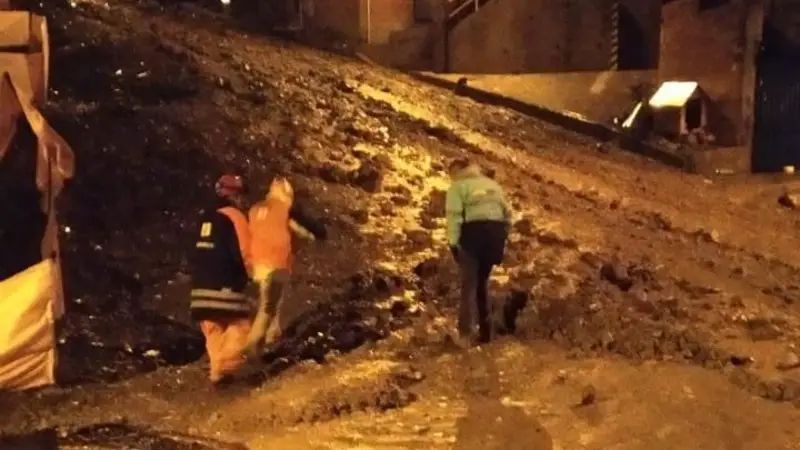 El deslizamiento de tierra se debió a las obras de prevención, pero que la fuerza de las lluvias provocó la mazamorra, así lo informó Juan Pablo de La Fuente, director de prevención de riesgos.