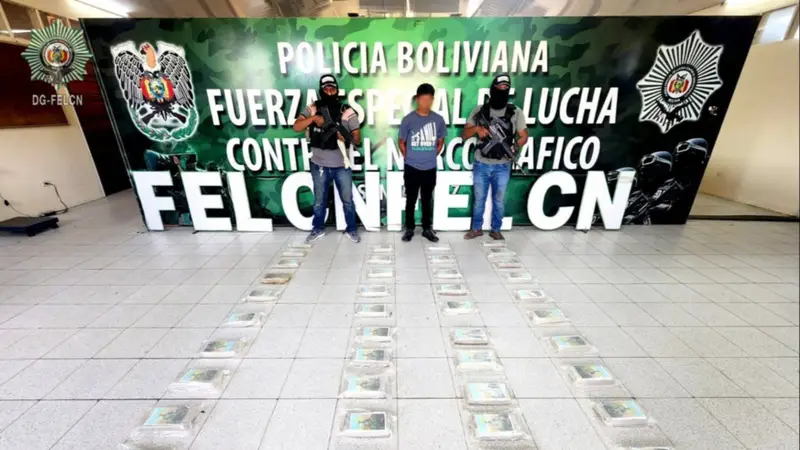 Efectivos de la Fuerza Especial de Lucha Contra el Narcotráfico (Felcn) aprehendieron a un hombre que transportaba 40 paquetes de pasta base de cocaína en la carretera Cochabamba–Santa Cruz, durante un operativo de control vehicular.