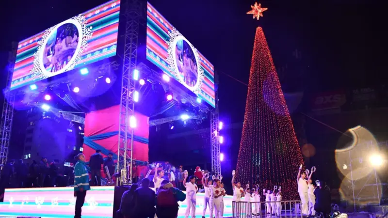 La celebración navideña reunió a cientos de personas en la tradicional plaza paceña. El encendido del imponente árbol de 30 metros de altura dio inicio a una velada que buscó llevar luz, esperanza y alegría a los hogares de la ciudad.