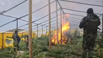 El material audiovisual muestra la magnitud de los invernaderos y el despliegue operativo en áreas rurales alejadas, lo que da cuenta de la complejidad de la intervención.