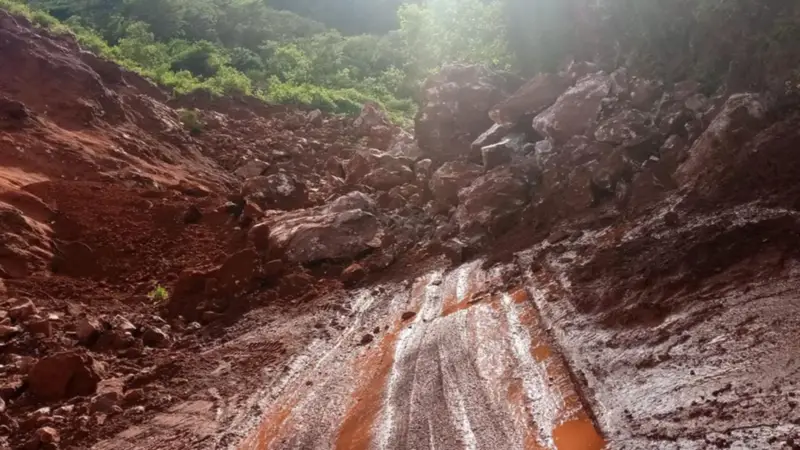 La ruta Tacuarandi – Alto de Zarzas está intransitable debido a un derrumbe de gran magnitud en el sector Lagunitas.