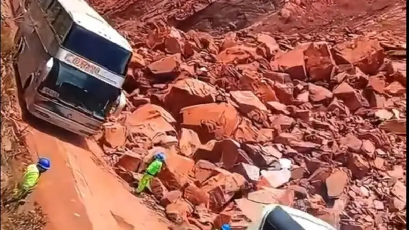 Oruro, se mantienen por segundo día los trabajos de limpieza en la ruta Oruro-Cochabamba a la altura Confital la ABC recomienda transitabilidad con precaución a consecuencia de los derrumbes en la zona.