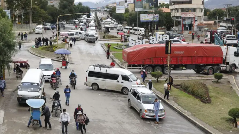 Según el Comando Departamental, son 18 puntos de bloqueo en la carretera a Sacaba. Por eso, las salidas al oriente fueron suspendidas.
