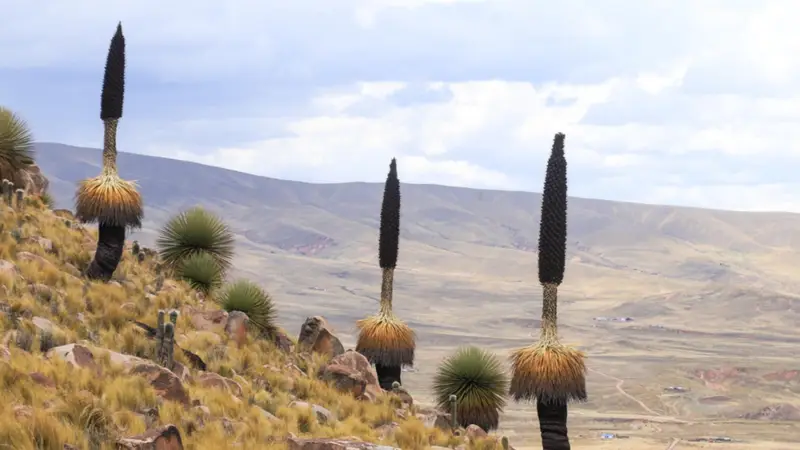 El municipio de Comanche, en el Altiplano de Bolivia, es testigo de un proyecto para preservar a la emblemática puya raimondii, la planta conocida como la 'reina de los Andes' que vive entre 40 y 100 años y florece una sola vez en su vida, pero además está amenazada por el cambio climático y la minería.