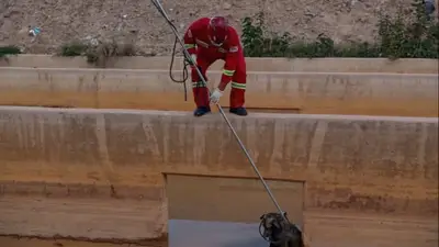 Un rescate oportuno permitió salvar la vida de un perro que se encontraba atrapado en el canal de un río en la ciudad de Oruro, gracias a la rápida intervención del personal de Bomberos Calama de la Policía Boliviana.