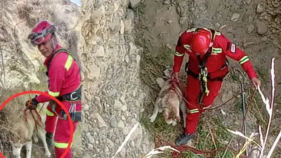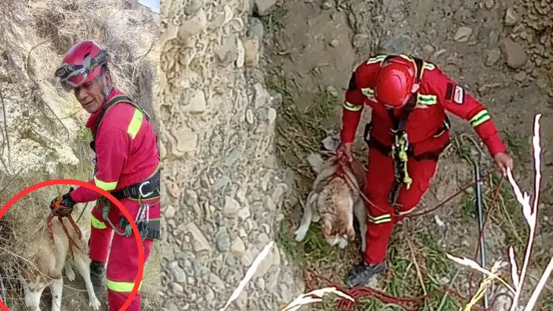 El equipo de rescate desplegó un operativo especializado para descender hasta el lugar donde se encontraba el animal.