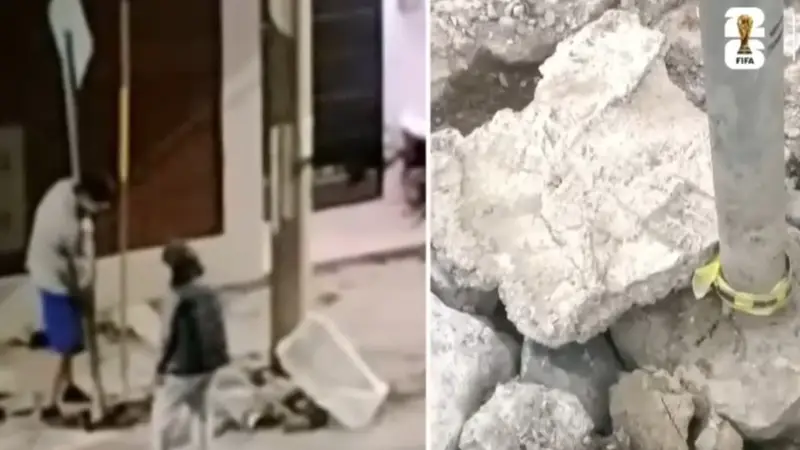 “Hemos recibido la denuncia y las imágenes donde se observa cómo intentan sacar el poste, pero no lo consiguen”, señaló.