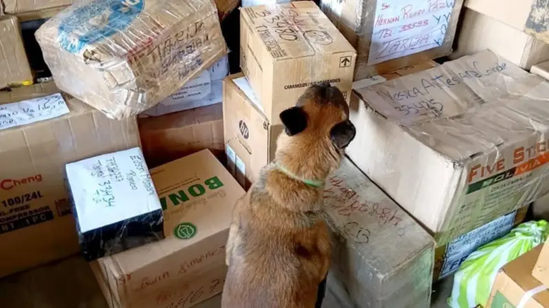 Durante la inspección, el can Milán dio una alerta positiva ante una caja proveniente de Cochabamba. Al abrirla, los agentes hallaron cinco paquetes con una hierba verdosa, que tras la prueba de campo resultó ser marihuana.