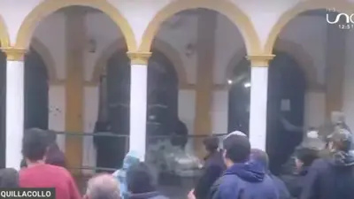 Cansados de convivir con aguas negras y malos olores, vecinos de la OTB Martín Cárdenas llevaron su protesta hasta la Alcaldía de Quillacollo y arrojaron aguas servidas como medida de presión.