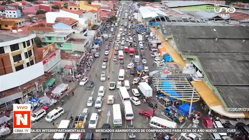 A pocas horas de recibir el Año Nuevo, los mercados y zonas comerciales de Santa Cruz colapsan por la alta afluencia de personas y vehículos. Las calles están saturadas y se recomienda evitar circular en horas pico.