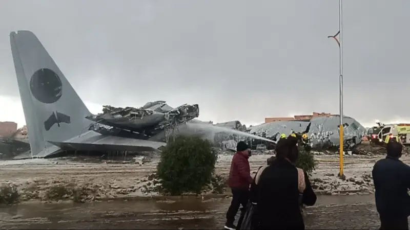 Tras el accidente aéreo en la ciudad de El Alto la gente que se encontraba cerca burló los círculos de seguridad para llevarse dinero que se encontraba al interior del avión Hércules.