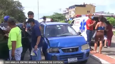 Un aparatoso accidente múltiple se registró este viernes en la intersección del segundo anillo y la Avenida Brasil, dejando un saldo preliminar de tres personas heridas. En el siniestro se vieron involucrados cuatro vehículos que colisionaron sucesivamente, provocando el despliegue inmediato de los servicios de emergencia.