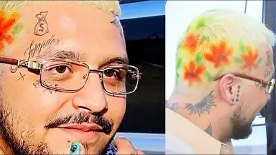 Pero no sólo eso, el cantante decidió darle un toque más llamativo a su cabeza, agregando dibujos de flores color naranja, que fueron distribuidas por todo su cráneo, con excepción de la parte superior.