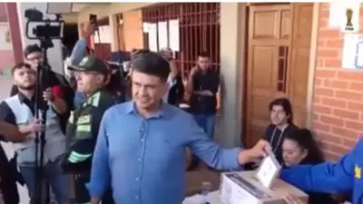 El candidato a la Gobernación de Chuquisaca por la alianza Gente Nueva, Luis Ayllón, emitió su voto este domingo en la ciudad de Sucre, en el marco del balotaje que definirá a la nueva autoridad departamental.