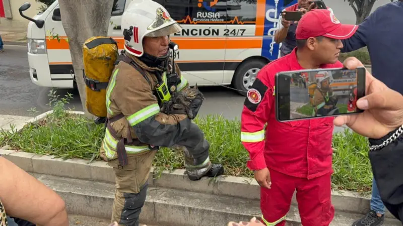 El heroico rescate del felino y la rápida respuesta de los equipos de emergencia evitaron que la tragedia sea mayor.