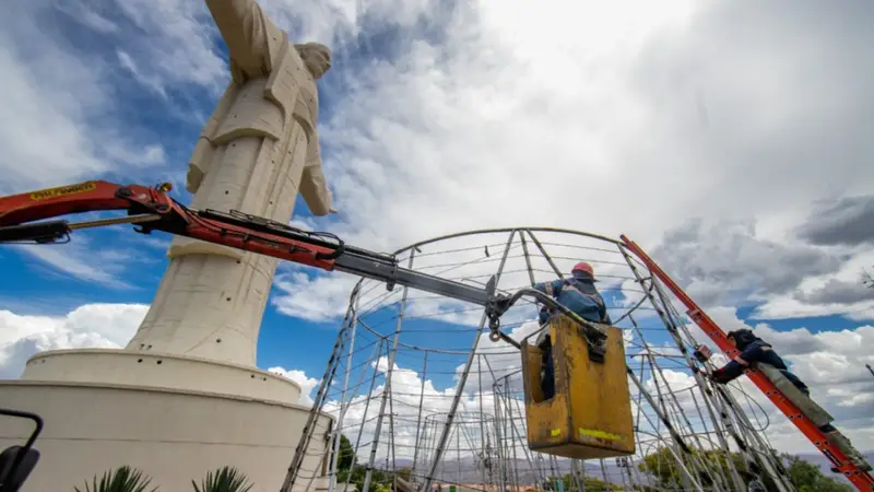Cochabamba comenzó la construcción del árbol navideño más grande de Bolivia, que se elevará 40 metros sobre el Cristo de la Concordia y contará con 1,5 millones de luces LED que iluminarán tanto la estructura principal como las zonas aledañas.