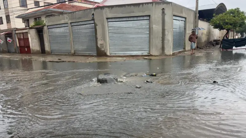 Vecinos de la OTB Villa Galindo, en la avenida Perú de Cochabamba, denuncian que las calles del sector se encuentran completamente inundadas debido al rebalse de la red de alcantarillado. El problema se agrava con la llegada de la temporada de lluvias, generando riesgos para la salud y la integridad de los hogares.