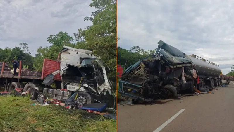 De acuerdo con el informe preliminar, en el hecho estuvieron involucrados un camión cisterna y un tractocamión. A consecuencia del violento impacto, ambos conductores perdieron la vida de forma instantánea.