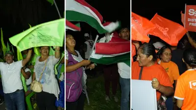 Con banderas flameantes, algarabía y mucho colorido, los simpatizantes de los diferentes frentes políticos dan la bienvenida a los candidatos de su preferencia. Los primeros en llegar al encuentro fueron los candidatos Manuel Saavedra, Soo Hyun Chung, Alfredo Solares y Angélica Sosa.