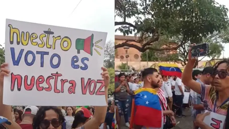 Con carteles y banderas los residentes, aseguraron que con estas elecciones se pueda dar un cambio que beneficia a todos los venezolanos, y que todos los que emigraron puedan retornar a su país para reunirse con sus familias.