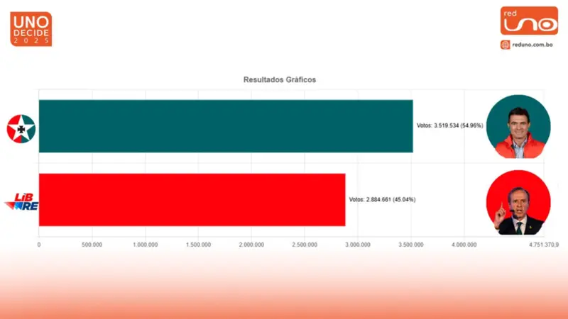 El cómputo oficial de votos para la segunda vuelta electoral en Bolivia ha finalizado, confirmando la victoria del Partido Demócrata Cristiano (PDC), con sus candidatos Rodrigo Paz y Edmand Lara, sobre su contendor, Alianza Libre, que postulaba a Jorge Tuto Quiroga y Juan Pablo Velasco, confirmando los resultados preliminares del Sirepre.