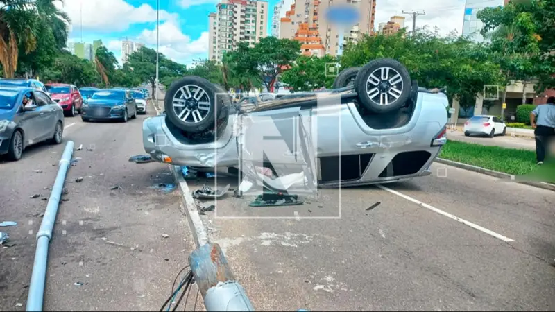 De acuerdo con el relato de testigos, una vagoneta que circulaba a velocidad perdió el control e impactó violentamente contra un poste de alumbrado público.
