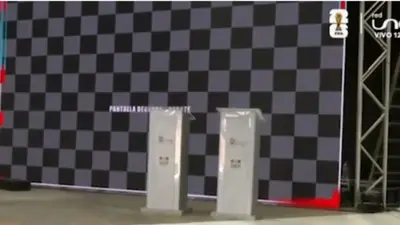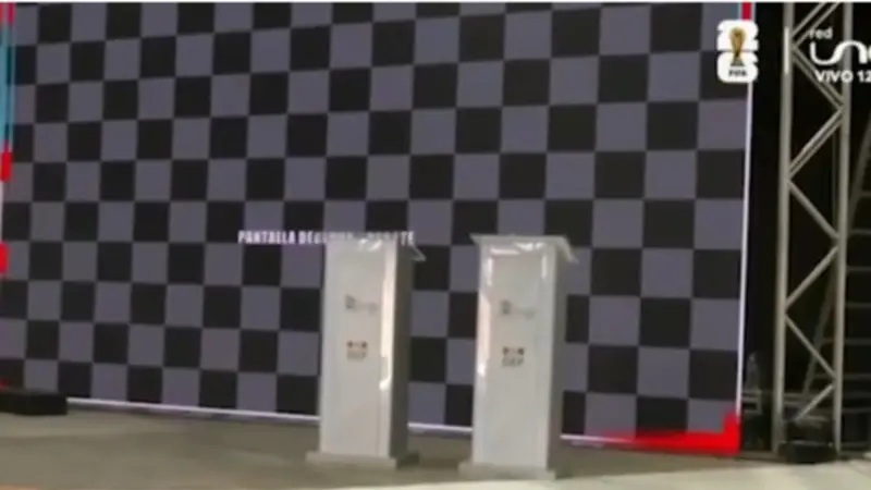 En el lugar se instaló una pantalla gigante, atriles y tarimas para los medios de comunicación, como parte del despliegue técnico para garantizar la transmisión del debate.