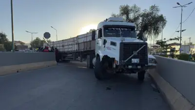 El conductor del tráiler intentó subir a la acera para tomar el puente, pero la maniobra resultó fallida: “Cuando ya estaba girando, dobló completamente la señalización del tren metropolitano y rompió parte del guardarraíl. Además, el eje trasero del tráiler se dañó, impidiendo cualquier intento de retroceso”, explicó un testigo desde el lugar.