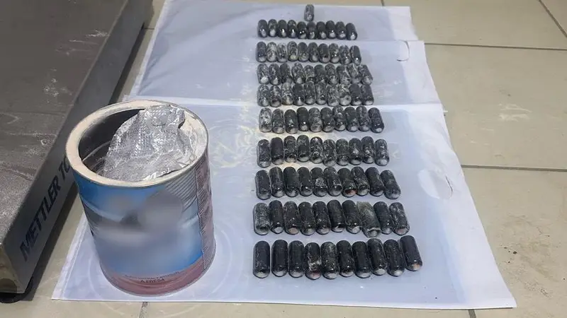 Dentro del tarro de leche, había 91 cápsulas de clorhidrato de cocaína, mismas que estaban envueltas con cinta de color negro.