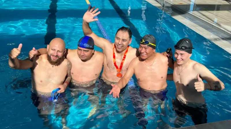 Este jueves se vivió la gran final, Diego Viamont, presentador de Notivisión, había retado a los miembros del grupo cumbiero “Sabor Sabor”, para poder enfrentarse en una competencia de natación dentro de una piscina de 25 metros de recorrido.