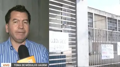 Estudiantes de la Facultad de Humanidades tomaron los nuevos módulos de la Uagrm, exigiendo la renuncia del educador por supuesta corrupción.