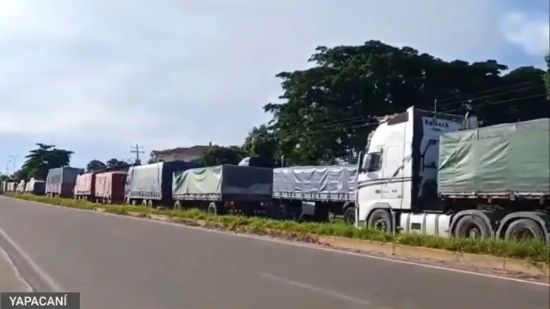 A metros de la Plaza Principal de Santa Fe de Yapacaní en Santa Cruz, se encuentran decenas de transportistas que permanecen varados. El transporte pesado suma ya tres días de inmovilidad absoluta debido a las movilizaciones convocadas por la Central Obrera Boliviana (COB).