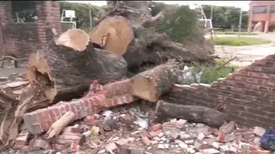 Uno de los casos más preocupantes se registra en el Módulo 24 de Septiembre en el Distrito 2, donde un árbol cayó sobre la barda del establecimiento desde inicios de diciembre.