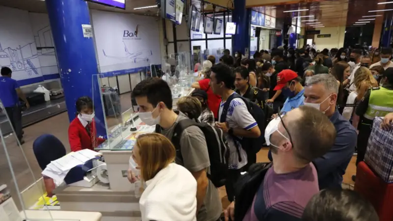 Caos con los vuelos a Santa Cruz y escalas internacionales que tienen que tomar los pasajeros en el aeropuerto Jorge Wilstermann. Fotos: APG.