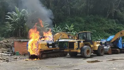 La AJAM y la Policía Boliviana realizaron un operativo en el municipio paceño de Sorata, donde desactivaron un campamento ilegal e inutilizaron maquinaria pesada utilizada para actividades extractivas no autorizadas.