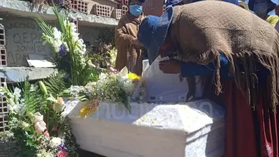 En medio del dolor y la tragedia, este viernes en la ciudad de El Alto, Cementerio Mercedario, enterraron a la niña Marilyn de 12 años, quien fue victimada por un compañero de colegio, la abuso sexualmente y la victimo utilizando un cable de celular según apuntan las investigaciones, familiares consternados por este crimen dieron el último adiós y a una sola voz piden justicia.