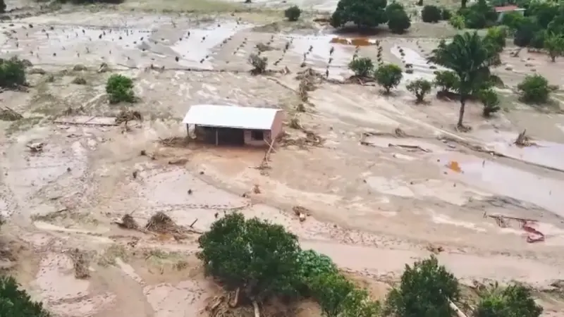 Asimismo, cultivos y plantaciones de cítricos quedaron sepultados bajo arena y agua, afectando gravemente el sustento de las comunidades.
