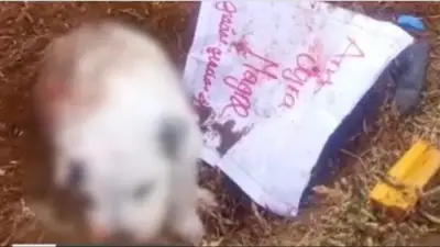 El cachorro presentaba signos de haber sido preparado para una ceremonia. Fue trasladado a un albergue, donde recibe atención veterinaria y se encuentra en proceso de recuperación.