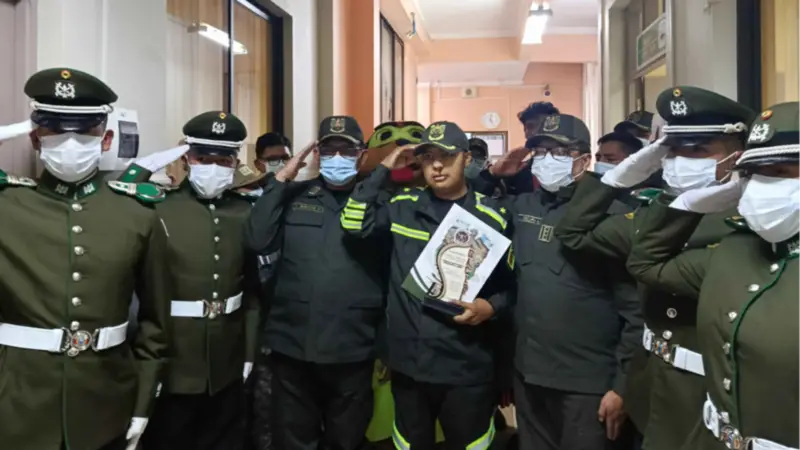 El nombramiento fue entregado por el comandante departamental de la Policía en Potosí, Mirko Bustos, quien destacó el valor del adolescente.