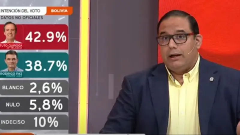 A pocos días del decisivo balotaje del 19 de octubre, la Red Uno presentó su Gran Encuesta Nacional, que revela una ajustada contienda entre Jorge "Tuto" Quiroga, de la alianza Libre, con el 42,9% de intención de voto, y Rodrigo Paz, del Partido Demócrata Cristiano, con el 38,7%.