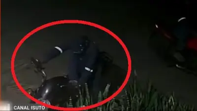 Uno de los individuos descendió rápidamente del vehículo para manipular el sistema de encendido de la moto estacionada. Tras un breve forcejeo, logró poner en marcha el motor y escapar del lugar.