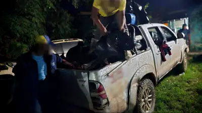 En el lugar, los efectivos policiales encontraron a los acusados en flagrancia con dos camionetas que transportaban ocho reses faenadas en sus parrillas, además de armas de fuego y municiones.