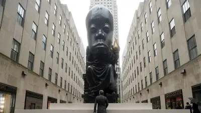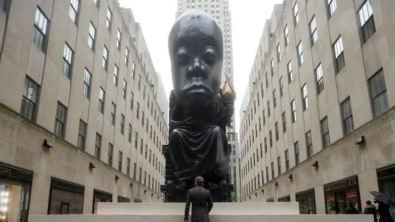(Reuters) - Una nueva y enorme escultura de bronce da la bienvenida a los visitantes del Rockefeller Center, en la primera exhibición de un único artista en el emblemático sitio de Nueva York.