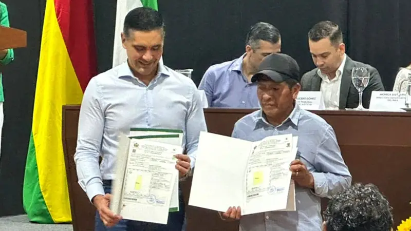 El Gobierno nacional realizó la entrega de títulos de propiedad a pequeños productores y comunidades, en un acto en el que el ministro de Desarrollo Rural y Productivo, Óscar Mario Justiniano, destacó que se trata de un proceso largamente esperado por las familias beneficiarias.